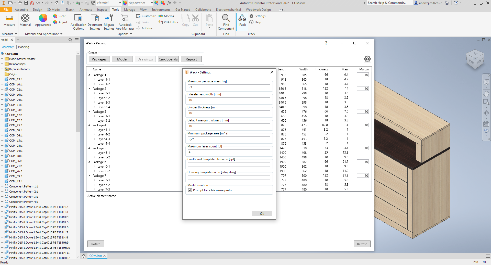 Od początku swojej działalności bardzo blisko współpracujemy z wieloma firmami działającymi w szeroko pojętej technologii drewna. Wdrażamy u nich przede wszystkim oprogramowanie Autodesk Inventor wraz z dodatkiem WoodworkForInventor. Często wśród różnych pytań, które pojawiały się w naszych rozmowach, padało pytanie dotyczące tworzenia paczek do wysyłki produktów do klienta. Czy jest jakieś narzędzie? Jak najprościej tworzyć paczki? Czy opłaca się tworzyć paczki w środowisku Autodesk Inventor? Przez wiele lat nie było żadnego narzędzia, które by to żmudne zajęcie upraszczało. Chcąc powiększyć nasze portfolio i wychodząc naszym klientom na przeciw sami stworzyliśmy dodatek, który będzie spełniał wszystkie oczekiwania. Teraz możemy ogłosić, że nasz nowy darmowy dodatek – iPack pojawił się w oficjalnym sklepie Autodesk Apps Store.