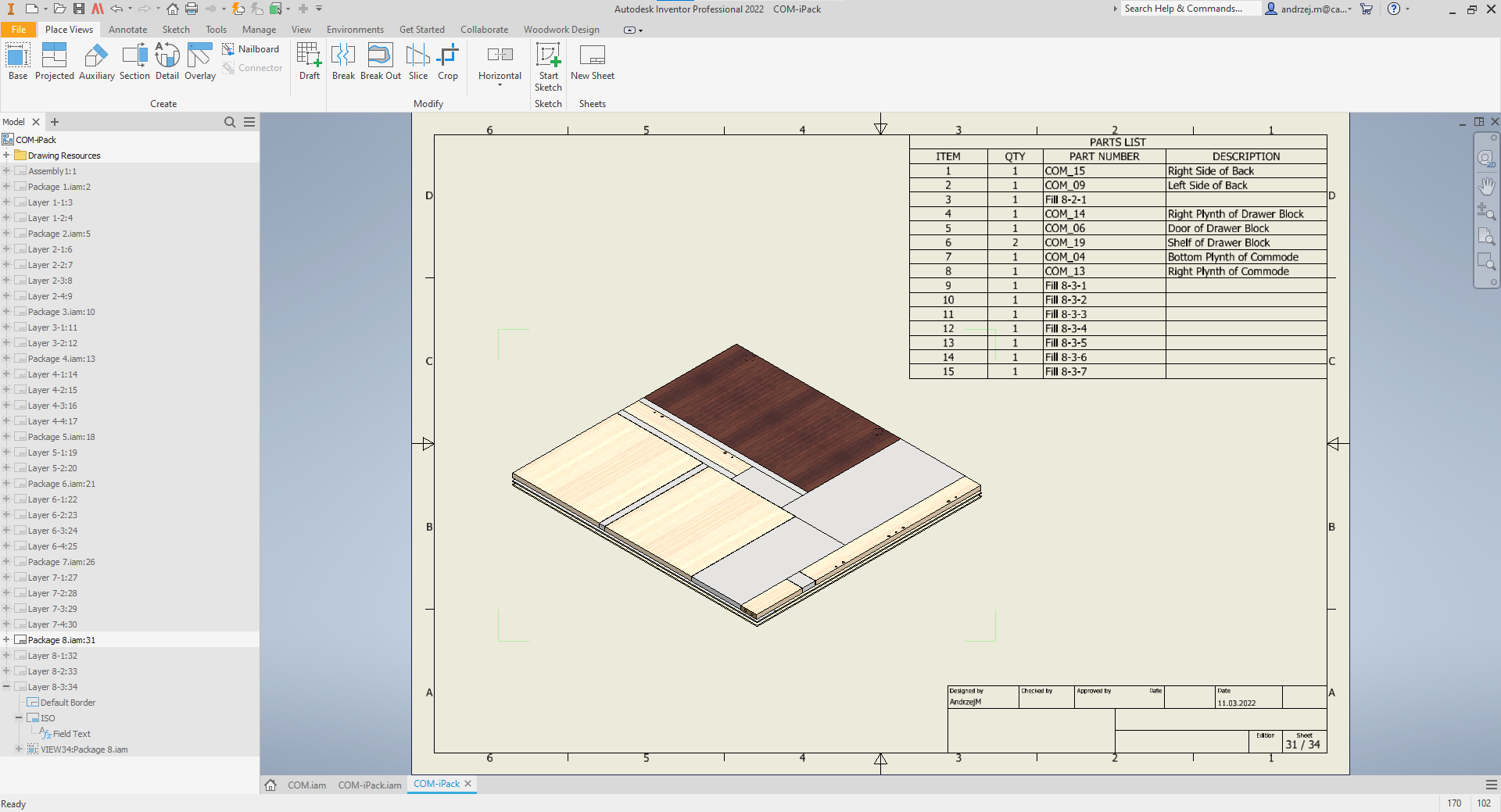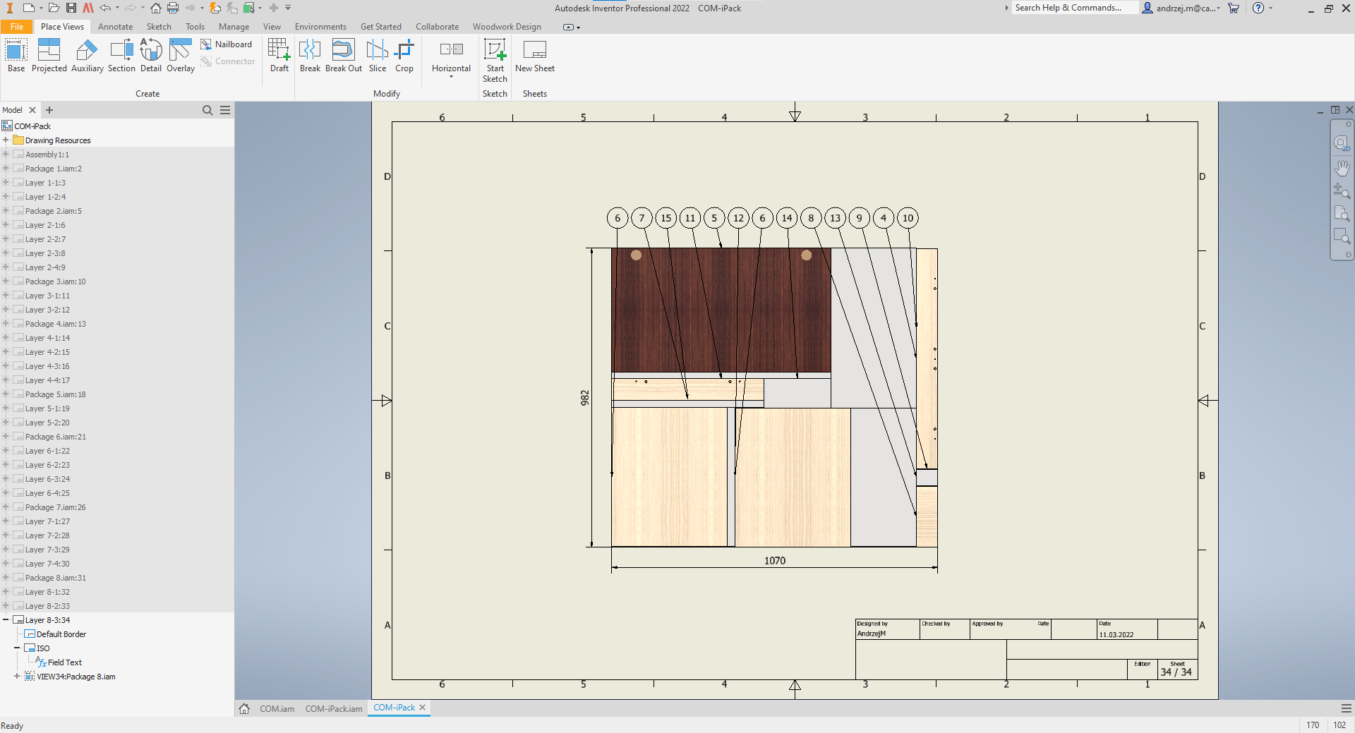 9. Na każdym rysunku paczki automatycznie dodana jest domyślna lista części. Na kolejnych arkuszach zawierających warstwy każdy element jest oznaczony numeratorem odnosząc się do listy części.