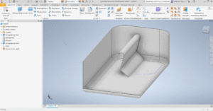 Gdy w operacji “Wyciągnięcie proste” wybierzemy nasz szkic, Autodesk Inventor automatycznie zaznaczy opcję “Dopasuj kształt” po czym wskazujemy kierunek, w którym chcemy dodać materiał. Teraz końce naszego profilu przedłużają się do najbliższych powierzchni tworząc bryłę.