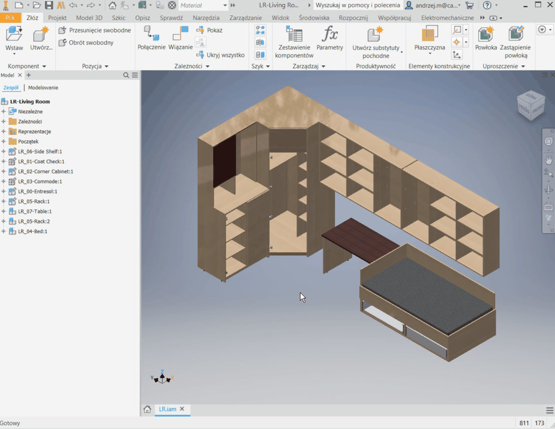 Często zdarza się, że nasze złożenie składa się z kilku podzespołów, szyków, czy folderów. Wielokrotnie komponenty w ich obrębie wyłączamy z widoczności.